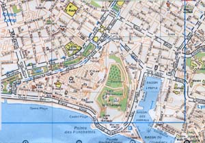 さて、ニースに着き、我々一行はヨットやクルーザーが数多く停泊している港を見た。その後のどの港町に行っても感じたことではあるが、そこにはフランス船籍始めイギリス・スイス等色んな国の豪華クルーザーが停泊してあり、世界のお金持ちが南仏に全て集まったような感じがした。少なくとも酒田港では見られない風景であった。![]() 図1 ニースの地図(le Chateauを中心として) その後、港を上から見るために小高い山le Chateauに登った。この山は名前から判断するに城跡であり、また、地図でも判るように海・港や街を眺望できる位置にあることから、絶好の展望台となり、海から襲ってくる敵に対しての見張り台としての機能も含めて、往年のニースの中心になっていたのであろう。これと同じ機能を有していたのが、酒田市の日和山であった。まさしく海の「ひより」や街を見るための自然の小高い山であり、最上川の河口でもあった現在の位置に必然的に生まれて発展したのが、酒田市であった。しかし、残念なことに長い年月の間に前海を埋め立てしたことにより日和山は海に対して引っ込んでしまい、現在はこのような機能を失ってしまっている。これの代替え的な機能を持たせようとしているのが、県が酒田港の東港で展開している「酒田港港湾環境整備事業」の緑地整備である。これは堀先生のアドバイスを受けて、景観的にも眺望的にも素晴らしい「新しい日和山」が整備されつつある。 山の上の平場は現在、遊園地になっており、その平場のエッジ部分には幅5m程度の展望スペース兼遊歩道がある。これは展望するのは薄皮部分だけで充分であり、展望が不向きな内側は子供の遊び場として有効に利用している例である。子供の遊び場としたのは大人も付いて来ることにより、より多くの人が集まるであろうとの考えからと思われる。確かに、土曜日の午後でもあり天気も穏やかなせいか、小さな子供を連れた家族で賑わっていた。 |