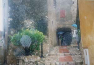 ![]() 写真8 デッドスペースの植栽 9 直線的でない街並 車中心の社会は道をまっすぐにつくる。曲がる半径も小さくできないが、人間なら直角にも曲がることができる。現実の街づくりに生かすことはできないが、エズは直線的な街づくりをしていない。そのため、この道の先に何があるのかわからない楽しみがある。 ![]() 写真9 直線的でない街並 10 エズの街の空間構成 ![]() 写真10 街の高台にある植物園からの眺望 |