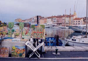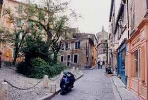 | まちを歩くと、カフェでの人々の語らいがあり、岸壁での絵描きなど、まちというものの前に、最初に人間の存在がある。 囲まれ感が強く、港を隔てた対岸でも人々の動きがわかるスケール。カンヌよりも立派な建物がないじゃないかという意見もある。でも、いごこちがよい。自然の地形の大きさがジャストフィットしたために、リゾート地として有名になった。 ![]() 写真30 屋外カフェと旧港 ![]() 写真31 カフェでのくつろぎ(海との対面) ![]() 写真32 丘の上からの旧港 ・老夫婦がじっと海を見ている。 |
