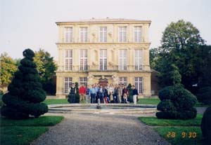 | (AIX-EN-PROVENCE)の概略と本日の行程説明後、バスにて旧市街地へ移動。→ヴァンドーム館→中世の温泉療養所 →サン・ソ・ヴァール大聖堂 →各自サンドウィッチを買い公園で昼食。 エクス・アン・プロバンスはルイ王の時に(15世紀)最も栄え、簡素で優雅な建物や優美さをたたえる公園、重厚な石畳、数多くの魅力的な噴水が今もなお保ち続けている都市であり、ルイ王の精神が生き続けた美術や、国際音楽祭などが開催される芸術の古都でもあった。しかし、17世紀に城壁(今の旧市街の外壁)の殆どが取り壊された。 1 ヴァンドーム館 18世紀、ジャンクロード・ランボーが造った建物正面の構成は古代ローマ時代を模倣し、1階の柱頭を単純かつ堅固なドリス様式、2階の柱頭は優雅ではあるが華麗ではないイオニア様式、3階の柱頭は装飾が華麗なコリント様式が採用され、3つの様式をリズミカルに重ね合わせた建築物である。手前の庭に2列に並んでいる左右の装飾的な樹木と、中央の噴水により、遠近感を利用し広い空間を出すための工夫がされていた。 ![]() 写真1 ヴァンドーム館の前で記念撮影 ![]() 図2 建築様式 |