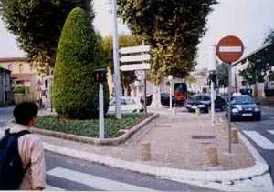 道路と歩道の境にガードレールが無く人の行き来を妨げていない、また、車道には車のスピードが上がらないようにハンプが設けてある。![]() 写真8 旧市街の道路 お金をかけずにワンポイント的にいれた石畳、 マニュアルにとらわれない設計者の工夫が見える。 ![]() 写真9 商店街の道 5 エクス・アン・プロバンスの新市街の景観 モナコでも観られたように、お金をかけず、住宅の外壁に屋根の瓦を重ね、風通しを良くし、色合いを旧市街にあわせている。ただ、基礎部がコンクリートでできていたため、もう一工夫あれば良かった。(民家では財政的に無理な話なのか?) |