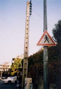 ![]() 写真10 瓦の外壁 人の通行に優しく、ガードレールなどの帯状の防護柵が無いため、透過性の良いロータリー。 ![]() 写真11 ロータリー部の切り下げブロック 電柱は写真12のようにデザインされている。 ![]() 写真12 デザインされた電柱 (記録:長谷川直人) |