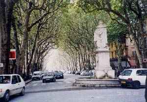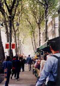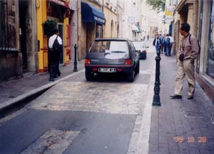 | 街の顔が出来ているため、街を理解するのが非常に簡単になり、訪れた人が自由に、安心して散策できることになる。 巨木に覆われた道路景観は、雪の多い山形では、なかなか味わえない、楽しい雰囲気が満ちていた。(写真3・4・5) ![]() 写真4 プラタナスの並木道と噴水 ![]() 写真5 片側2列のプラタナスの並木道 また、この日はたまたま街路樹の剪定場面に遭遇した。太い枝から無駄に上に伸びた細い枝だけを剪定し、その傍らで機械を使い、チップにして処理していた。日本によく見られる鉛筆みたいな剪定ではないので、次の年もボリューム感のある緑を楽しむことができる。道路の落ち葉の処理の維持管理を考慮して、落葉の間近いこの次期に剪定しているのであろうか。(写真6・7) ○巨大ハンプ 高さ25p、スロープ3.5m、天端2mの巨大ハンプ。勾配が思ったほど急ではないこと、天端の幅が比較的大きいことにより、運転者に与えるプレッシャーが見た目ほどでないためか、自動車の減速の割合がさほどでないような気がした。 |