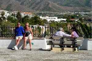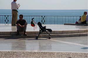![]() 写真11 傾斜に建つ白い家々 暑さをしのぐ為に建物を白く塗る慣わしは、空調設備が整った現在でも取り入れられ、家並の美しさを一段と際立たせている。 傾斜地を利用して建物の視界を良くすようにしていることが特徴としてあげられる。 残念なことに日本においては、建築法の規制で急傾斜地に建物を立てることは非常に困難で、ましてや家並みを整えることは個人の自由意志に任されている場合が多く、大抵は施主と建築家の裁量とされているようである。 A 街を楽しくする物 ![]() 写真12 楽しさが増す視点場 |