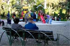 イ.装置 街を楽しむ為の小道具として、工夫されたベンチ・手すりやオープンカフェ・売店がある。 ![]() 写真13 子供達が楽しく遊ぶ様子を見る老夫婦 (マラガ) ![]() 写真14 一段高くした視点場 ![]() 写真15 街の歩道にある売店(マラガ) ウ.人も景観の一部 (人が楽しく集い・人が楽しく歩き・人が楽しく語らう)様は全ての景観整備が完成したことを意味するものとして考えることができる。 |