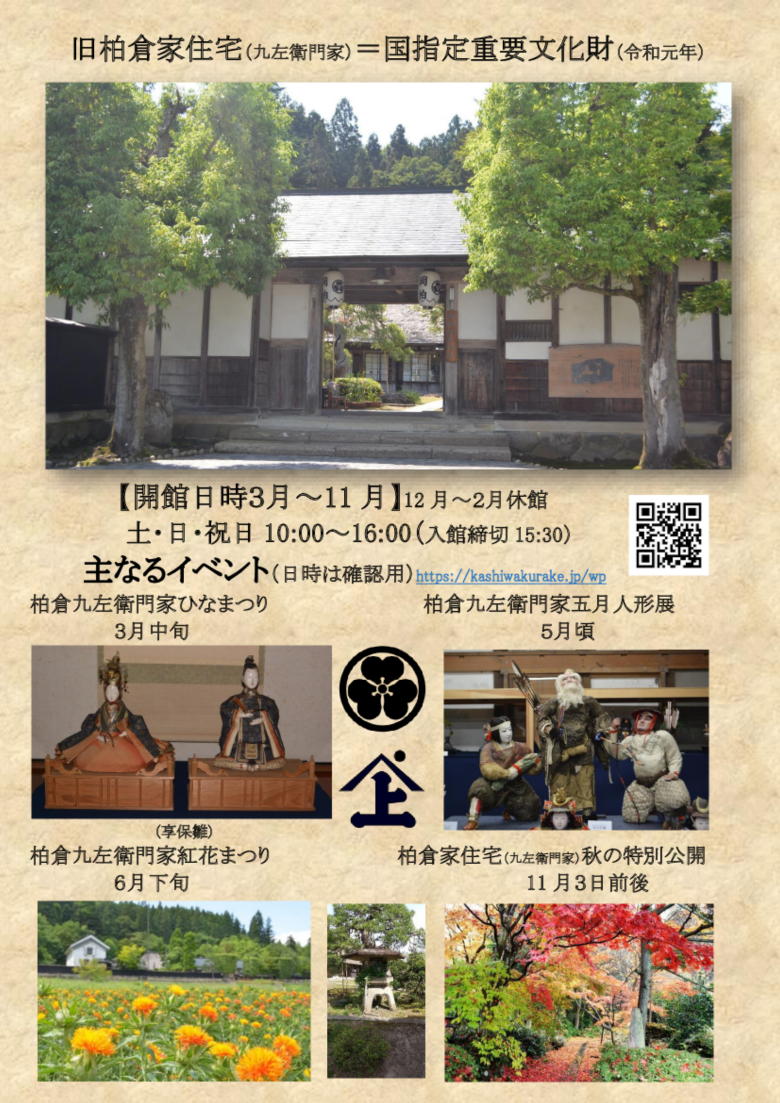 旧柏倉住宅の一般公開: 期間 3月〜11月迄 土・日・祝10時〜15時30分(閉館16時)