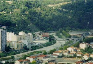 労した程だった。 特にこのマントンに行ったのが天気も気温も程良い日であったせいか、土地の人とのわずかな交流もあったことから、非常に良い印象を持った。もし長期間滞在するのであれば、のんびり出来る町の一つと思われた。しかし、実際に住むとなれば石や鉄で作った家に、木や紙で作った家で育った我々が落ち着いて住めるのであろうかという疑問も沸いてくる。 2 ニースNice 高速道路を利用して、ニースに戻った。途中の標識で「Esso」「Shell」「elf」など各ガソリン・メーカーの名前の後ろに○○Kmとスタンドまでの距離を表示してあるのが見受けられた。官側で建てた標識ならば、日本では書かれていないメーカーとのバランスを考えて、決して会社名は書かずに「GS」又は絵での表示であろうと思い、その根本的な考え方の違いに感心した。 ![]() 写真5 中規模河川の増水 なお、昨年も今回もあまり見受けられなかった中規模程度の河川をバスから眺めることが出来たので、その写真を添付する。モナコで経験した大雨がちょうど流れ入った時間であろうことから、増水している状況が判る。なお、この写真ではわかりにくいが、左岸側は堤防兼用道路になっており、昨年のセーヌ川の事例も含めて堤防兼用道路に関する許認可の法手続きがどうなっているのか知りたいと思った。 |