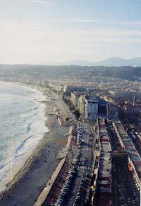 ![]() 写真6 エッジが展望スペース、内側が遊園地 さて、山から街に下りる遊歩道のあちらこちらに自然な感じで展望スペースが幾つか配置されてあった。世界中の社交界の人々が集まったというニースの海岸通りプロムナード・デザングレPromenade des Anglaisには10m程度の幅広の遊歩道もあることから、ジョギングする男女や腕を組んで歩く夫婦等様々な人が行き交っており、それらを展望台から見ることも大きな喜びであった。それら幾つかの展望台で感心したのは、ある展望台から下を見ると次の展望台がさり気なく配置してあり、特別な看板が無くとも自然と次の展望台に導かれるようになっていることであった。 ![]() 写真7 展望台から見るプロムナード・デザングレ 南仏の9日間を楽しんできましたが、特に今回はブイヤベースとムール貝などの美味しい食事とエズやルボー・ド・プロバンスなどの古い村々が印象に残りました。帰ってからそれらのイメージを込めて粘土をこねてみました。さて、どのように出来上がることでしょうか。 (記録:渡辺善彦) |