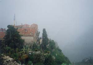 ![]() 写真8 デッドスペースの植栽 9 直線的でない街並 車中心の社会は道をまっすぐにつくる。曲がる半径も小さくできないが、人間なら直角にも曲がることができる。現実の街づくりに生かすことはできないが、エズは直線的な街づくりをしていない。そのため、この道の先に何があるのかわからない楽しみがある。 ![]() 写真9 直線的でない街並 10 エズの街の空間構成 ![]() 写真10 街の高台にある植物園からの眺望 |