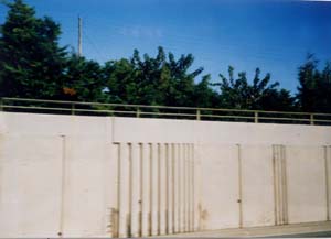 ![]() 写真6 コンクリートの素材を生かしながら型枠によって陰影をつけ、変化をもたせている例 (4) 車道と歩道 歩道と車道をきちっと分けるより、たっぷりと路側をとるということが大事で、余裕が臨機応変な対応を可能にする。 ![]() 写真6 たっぷりとられた車道や路側帯 (5) 5%のアート 道路事業費の5%を環境整備費に使うという制度は、町中を楽しくさせる。また、ロータリーのデザインなどにも変化とアクセントをもたらす。 ![]() 写真7 5%環境整備費でつくられたモニュメント |