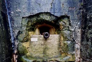 ブーゲンビリアやツタを絡ませ、石の壁とのコントラストが美しい。窓辺に飾られた花も町にとけ込む。 (8) 歴史のなごりの中で生活する 中世から現代へ。観光地としての風景。生活の場としての風景が混ざり合いながら、さらに、現在から21世紀へと引き継がれて行く。 ![]() 写真19 崩れかけた城壁 ![]() 写真20 大砲をかまえる。昔のなごり。 ![]() 写真21 城壁の外には、現在の家並みが広がる。 攻撃を意識しない現在の町並み (記録:三森和裕) |