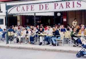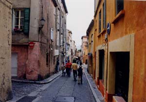 | まちを歩くと、カフェでの人々の語らいがあり、岸壁での絵描きなど、まちというものの前に、最初に人間の存在がある。 囲まれ感が強く、港を隔てた対岸でも人々の動きがわかるスケール。カンヌよりも立派な建物がないじゃないかという意見もある。でも、いごこちがよい。自然の地形の大きさがジャストフィットしたために、リゾート地として有名になった。 ![]() 写真30 屋外カフェと旧港 ![]() 写真31 カフェでのくつろぎ(海との対面) ![]() 写真32 丘の上からの旧港 ・老夫婦がじっと海を見ている。 |