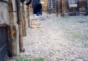![]() 写真9 巨大ハンプの確認状況 ○住宅地のポケットパーク 住宅の敷地の石張りと合わせて、広場も石張りとし、一体感を持たせて整備されている。宅地とポケットパークの境界に無意味な植樹をしないことにより、広場そのものも広く見せている。周辺との関係に配慮して計画することが大事である。(写真10・11) ![]() 写真10 住宅地のポケットパーク ![]() 写真11 民地と広場の関係 (記録:水田 雄) |
