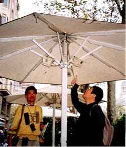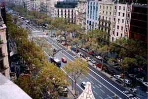 ![]() 写真12 屋上での課外授業 座りやすい階段の工夫。ちょっとしたことがもてなしとなる。子供達が自由にふれることが大事。日本は貴重な建物から閉め出してしまう。 ![]() ![]() 写真13 グラシア通の歩道タイル(左) カサ・ミラの床タイル (右) 左の歩道には何種類のタイルが使われているでしょうか。答えは、なんと1種類!! カサ・ミラでこのデザインのオリジナルを発見して感激、納得。ここでもガウディに脱帽。 ![]() 写真14 カサ・ミラから望むグラシア通 両側に側道がある。建物を使用する人は側道の両側に駐車できるので非常に便利である。 立派な街路樹は両側の建物があるからマッチしている。形でなく考え方を真似すべき。 |