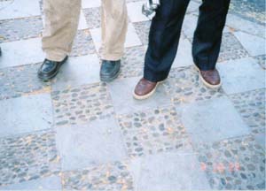 ![]() 写真2 ブロックの味 ピラトスの家はタリファ侯爵によって16世紀に建てられた。ピラトスとはキリストに死刑判決を下したローマの総督とのことだが、もちろん年代的に彼がこの建物を造ることは無理で、タリファ侯爵がエルサレムに滞在していたことからピラトスはこのような家に住んでいたのではないかと人々が想像したのでこの名が付いたらしい。家の前の道路に面してちょっとした広場があり市松模様にブロックが敷かれてあった。 ![]() 写真3 厚さ24mmのブロック 小石を有効に使った面白い表情のブロックではあったが24mmの薄さということで壊れているものが多く折角の味が損なわれ、もったいない気がした。 なお、昨年の南仏でも感じたことではあるが、歩道や小幅員の舗装を天然の小石で味わいよく造っている事例が数多くあり、歴史に裏付けされた彼らの考え方が表れていて、とてもいい感じを持つことが出来た。我々も公園や道路事業のちょっとした園路や歩道舗装を造るのに参考になると思えた。(車椅子の人の使い勝手はとても良いとは思えないが) |
