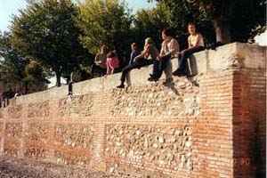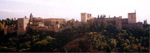 小高い山の上には城(今は修道院)があり中心に教会、斜面に沿って白壁造りの家並約10,000人の街は美しく周りはオリーブ畑が囲み、街の中には地場産業のクリスマスケーキを作る菓子工場があり妙齢の女性がたくさん働いていた。![]() 写真3 サンニコラス広場 (アルハンブラ宮殿の視点場) ベンチの横に植栽し視界を妨げないようにしている。手すり等なく、皆さん腰掛けて景観を楽しんでいる。ここでサンドイッチ、ビール、ポテトチップの豪華な昼食をたべたが、空間の快適性を体で感じながらの粗食がとてもおいしかった。 ![]() 写真4 万年雪のシェラネバダ山脈 アラブ王が避暑に使用したヘネラリーフエの別荘の水源はこのシェラネバダの雪解け水を利用している。イベリア半島で最も高いムラセン山は標高3,481メートルあります。 ![]() 写真5 アルハンブラ宮殿 サンニコラス広場からの景観でその地域の大事な宝物見せる工夫が素晴らしい。あのアルハンブラの思い出のギターの名曲が聞こえてきそうだし、又、アービンのアルハンブラ物語の世界に入っていきそうです。 |
