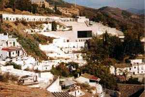 ![]() 写真6 アルバイシンのパテイオ(広場) 床は地場産の石、植栽1本、あとイスとテーブルだけ。皆が思い思いに自由に楽しんでいる。 ![]() 写真7 サクロモンテの丘 フラメンコ発祥の地、ここサクロモンテは、今もジプシーが住み奇妙で異様な雰囲気を感じさせる街。洞窟のジプシー芸術はあやしげで有名です。 ![]() 写真8 ジプシーの住まい 山の斜面を掘りコンクリートと石膏で固めただけの内部は、雨が少なく気候温暖なるがゆえ可能となる。 (原 行雄) |