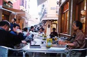 3 『バル』と屋台 日本には、屋台という男の付き合うステージとして立派な仕組みがあり、社交の場所として活用されている(この頃は、女性の殴り込みもあって一緒に酔っ払いの世界であるようだ。)。スペインには、屋内・屋外の両刀使いの『バル』という酔っ払いの社交場所として便利なものがある。朝食から夕食まで扱っているようだが、モツ煮込み(醤油を足せば日本と同じ)、鳥の空揚げ(先ほどまでモズの大群が上空を飛んでいた)で、ビールとカバ(Cavaというシャンパン)を飲み干すのが最高である。特に、歩道にテーブルとイスをセットした屋外ステージで味わう気分は爽快である。酒の肴は、歩道を通行する美人(スペインの可愛こチャン)と地中海の魚貝類をべースにしたオードブルである。 ![]() 屋外のバル(セビリア) 4 街の路(街路)ぶらぶら歩きの楽しみ 皆様がよく見かける夜の蝶は、夜の姿と昼の景色にギャップがあるのではと、世間の人が言っているようだ。街の中にいっぱいの飾り付け(広告物、案内板)は、くどい・賑やかすぎるのである。自然な素振りと飾らない服装は爽やか美人の条件、自然に調和したデザインと過剰な飾り付けのない景色は、美しい街づくりの条件ではないかな。素材そのものを生かした料理、材料そのもので勝負するあっさり味の『おでん屋』的感覚が必要ではないかな。 ![]() 夜の散策(セビリア) |