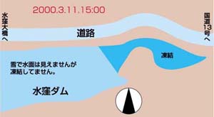 スキーか、カンジキはほしいところです。底の堅い層を信じて猫足でおそるおそる歩いてきました。落ちた人はいなかったようですが気を許すと20センチは踏み抜きます。(イスは沈むので使えません、ウレタンシートに座ってました。それでも沈んだけど)結構、水があがってじゃぶじゃぶ状態です。気をつけて楽しみ下さい。 |