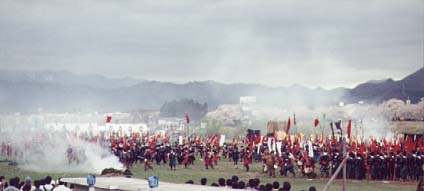 今を去ること300年、藩祖、上杉謙信公が関ヶ原の合戦の後、米沢の地を納めることになり、その謙信公を祭神する上杉神社(松ヶ崎公園)と二代・景勝公、十代・鷹山公を祭神する松ヶ崎神社の春の大祭。