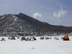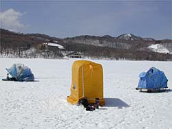 カタツムリテントをこんなにたくさん見たのは始めてで移動の楽さや釣法など赤城にあった実用的なものでしたね。私のテントでは迅速な移動が辛いです。