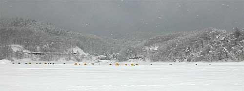 氷上も終わりが近く、釣りきち夫婦さんのハウスも今日で撤収です。