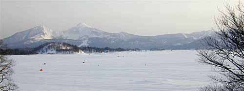 ワカサギ研究会さんと檜原湖最終戦に行ってきました。えんどうの近くの金山です。天気はバッチリで磐梯山もきれいでしたね。