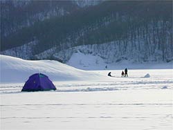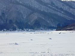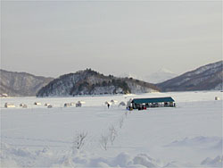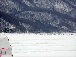 途中で、ワカサギ研究会さんから浮き釣りを教えてもらいました。誘いはどうしても単調になりますが、前あたりも見えて、すっと引き込まれる浮きには感動しました。