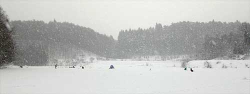 山形市の板橋沼に、山形釣り情報のS氏とその常連のpacoさんとオフ会アンド今期初の氷上釣りを行いました。