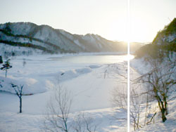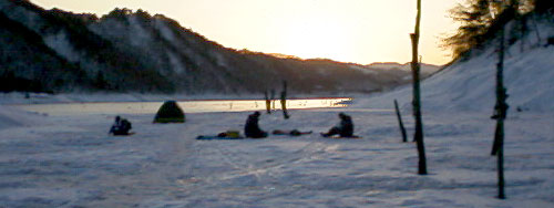 また、夕日とワカサギ釣りを写真におさめようと望遠を付けたカメラマンが数人道路で頑張っていました。