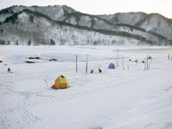 夕方4時30分頃、様子見に行っていきました。まだ、テント数張りと外での釣り師が数人頑張っていました。