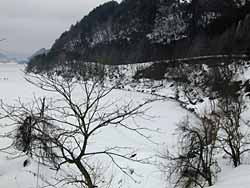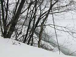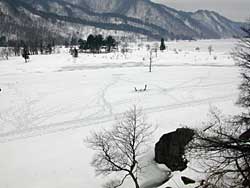 岸は、さすがにこの数日の暖かさで緩んでいます。中央に行けば大丈夫でしょうが、気を付けて乗ってください。 |