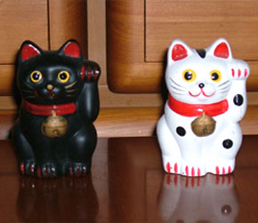 ■TOPの写真を新しくしました。招き猫です。前々の職場で誰かが旅行に行ったおみや。普段はTVの上の両脇で待機している2匹です。 |